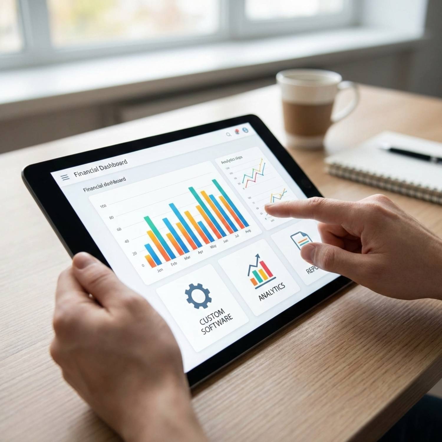 Creamos la herramienta exacta que necesitas. Desarrollamos sistemas de gestión administrativa, control de ingresos, plataformas para Recursos Humanos y puntos de venta (POS) adaptados a tu flujo de trabajo real.